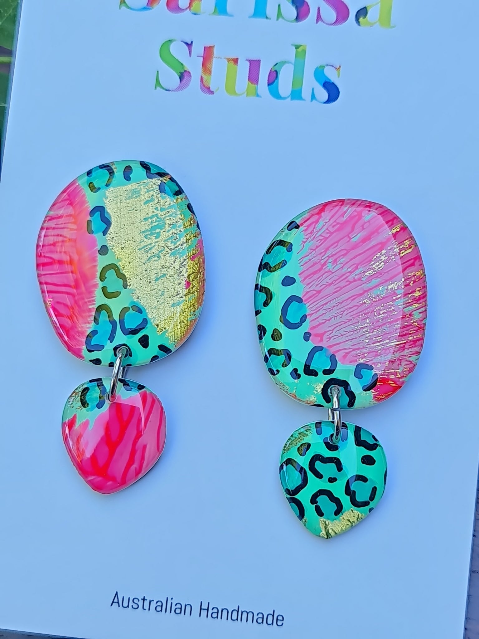 Each piece is handmade totally unique and one of a kind pieces of art. Our earrings are coated in resin to give them that amazing shine😍